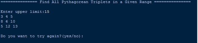 There you have it we successfully created How to Find All Pythagorean Triplets in a Given Range in Python. I hope that this simple tutorial help you to what you are looking for. For more updates and tutorials just kindly visit this site. Enjoy Coding!